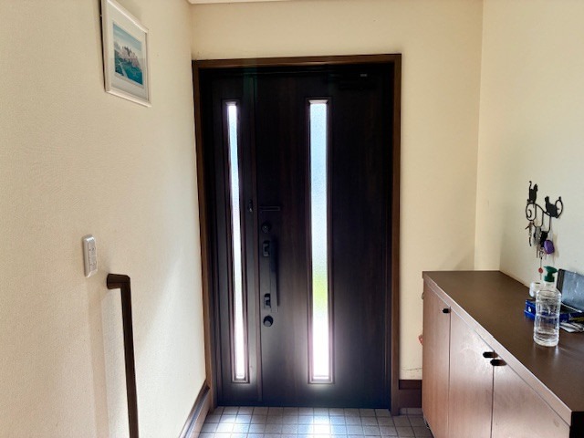最近物騒になっている中で分厚いドアかつ施錠も楽にできるリシェント高断熱玄関ドア(ファミリーロック仕様)を設置させて頂きました。